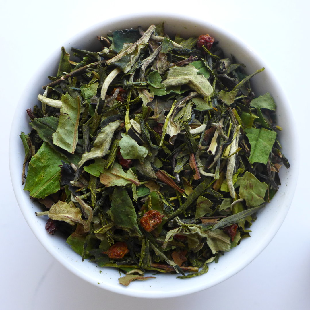 Zutaten: Grüner und Weißer Chinatee, Sanddornbeeren 10 %, natürliches Aroma.