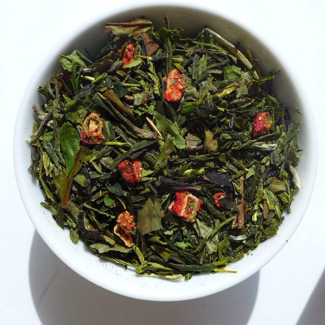 Zutaten: Grüner und Weißer Chinatee, Erdbeeren, natürliches Aroma.