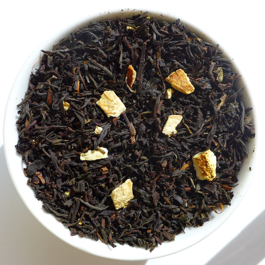 In den WarenkorbHerkunft: erntefrische TEEhaus-Mischung. Erkäuterung: Indien-, Ceylon-, China-Blend, Blüten, Orangenstücke, aromatisiert. Zutaten: Indien-, Ceylon-, Chinatee, Orangenstücke 7 %, Heideblüten, natürliches Aroma....