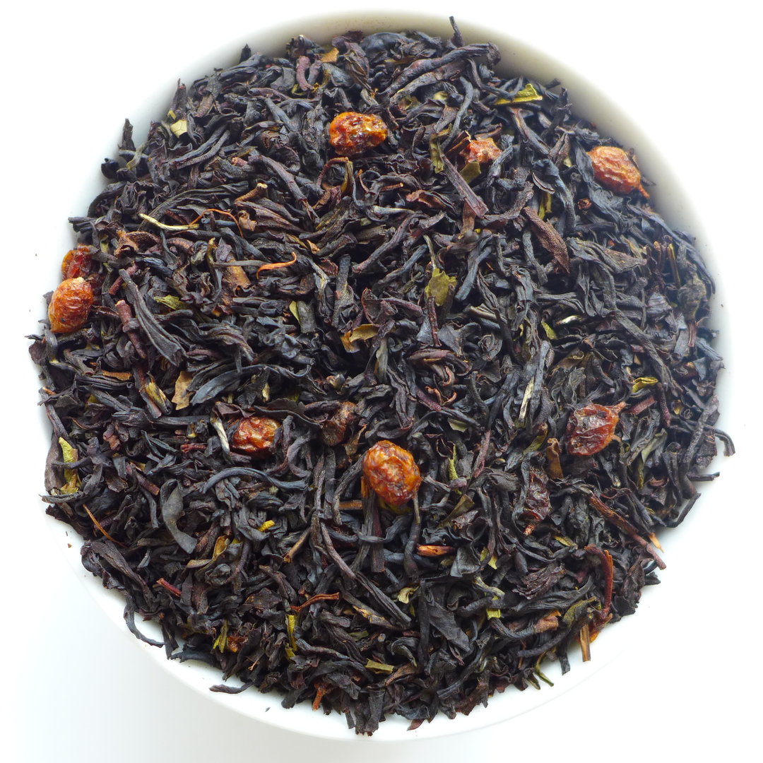 Zutaten: Nilgiri-, Ceylon-, Darjeeling-Blend, Sanddornbeeren 8 %, natürliches Aroma.