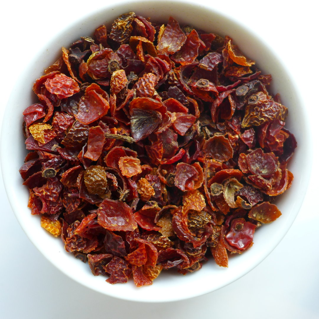 Erläuterung: entkernte Bio-Hagebuttenschalen*. (* = aus kbA Bio-Anbau).