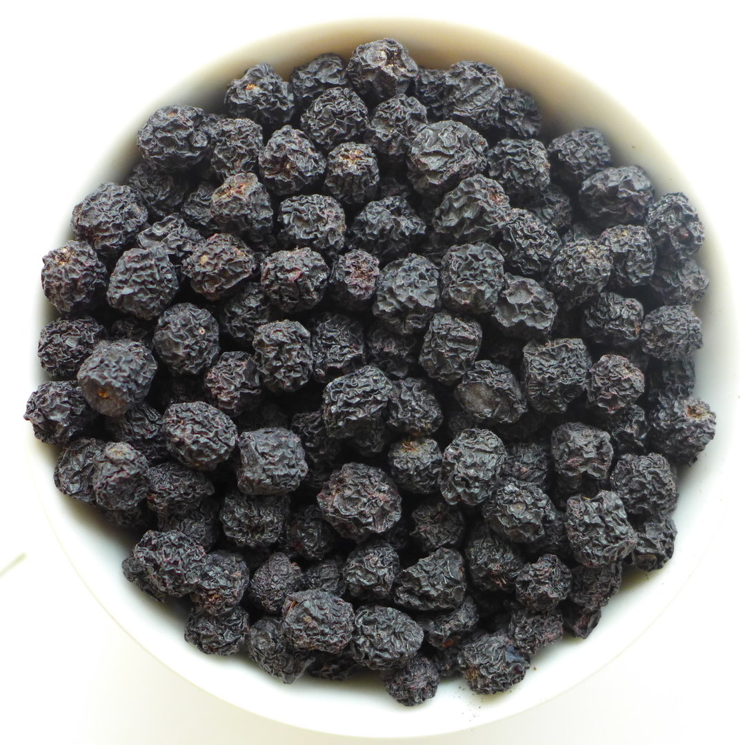 Erläuterung: Exotisches Beerenobst. Die Aroniabeere wird auch „Schwarze Apfelbeere“ genannt.