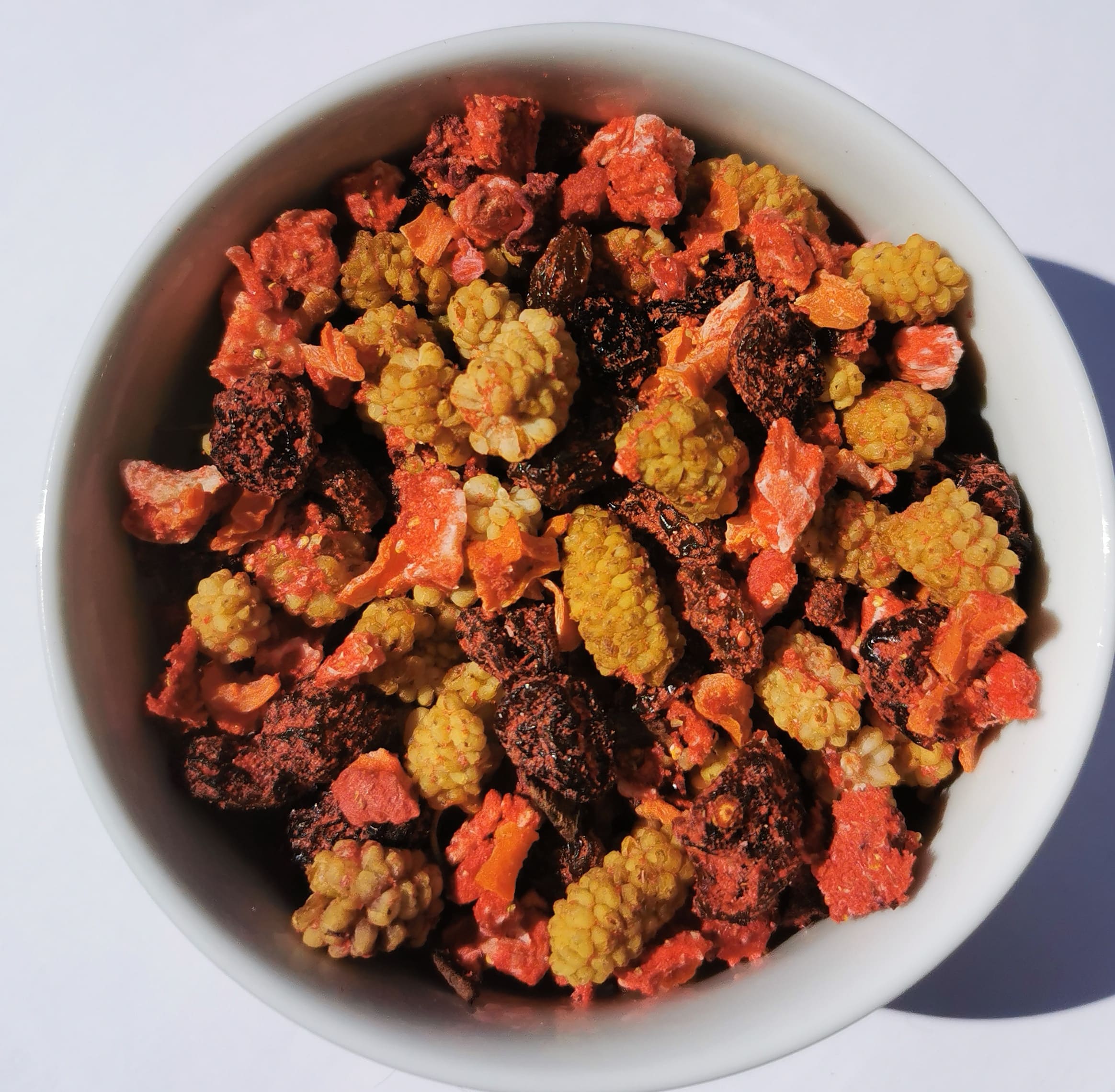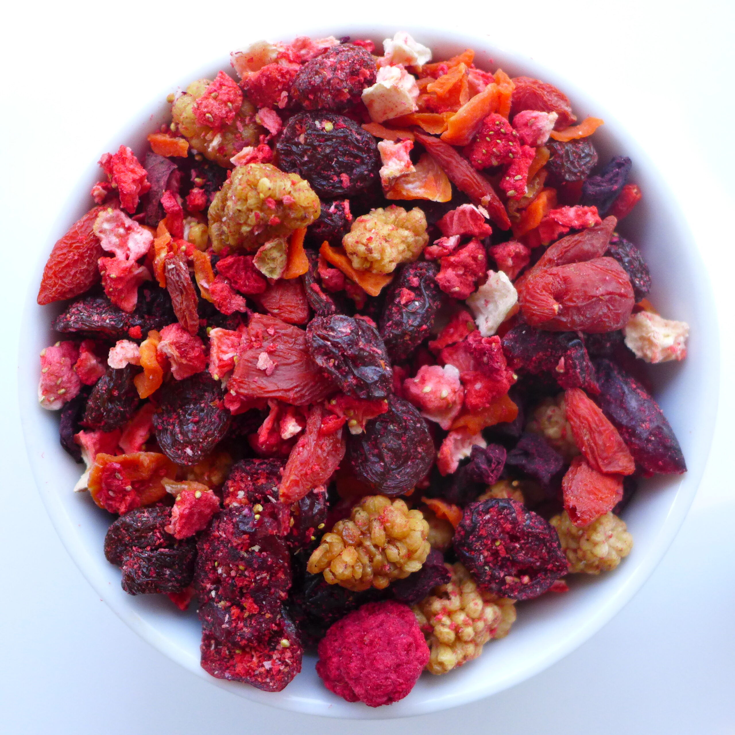 Essbarer Früchtetee, zum Beispiel auf Müsli oder im Joghurt. Auch als Eistee im Sommer ein beliebter Genuss.