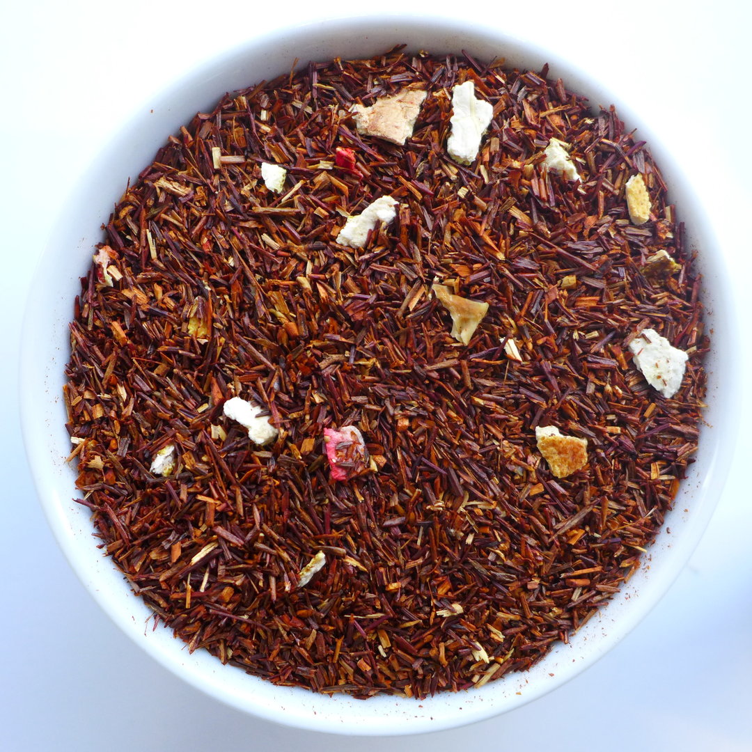 Zutaten: Rooibos-Tee Rot, Erdbeeren 3 %, Orangenstücke 3 %, natürliches Früchtearoma.