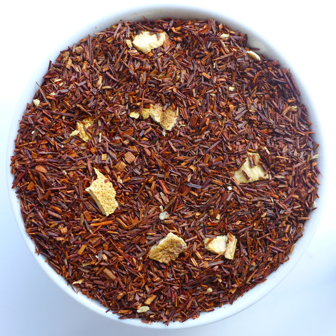 Zutaten: Rooibos-Tee Rot, Orangenschalen, Gewürze, Kokosflakes, natürliches Aroma.