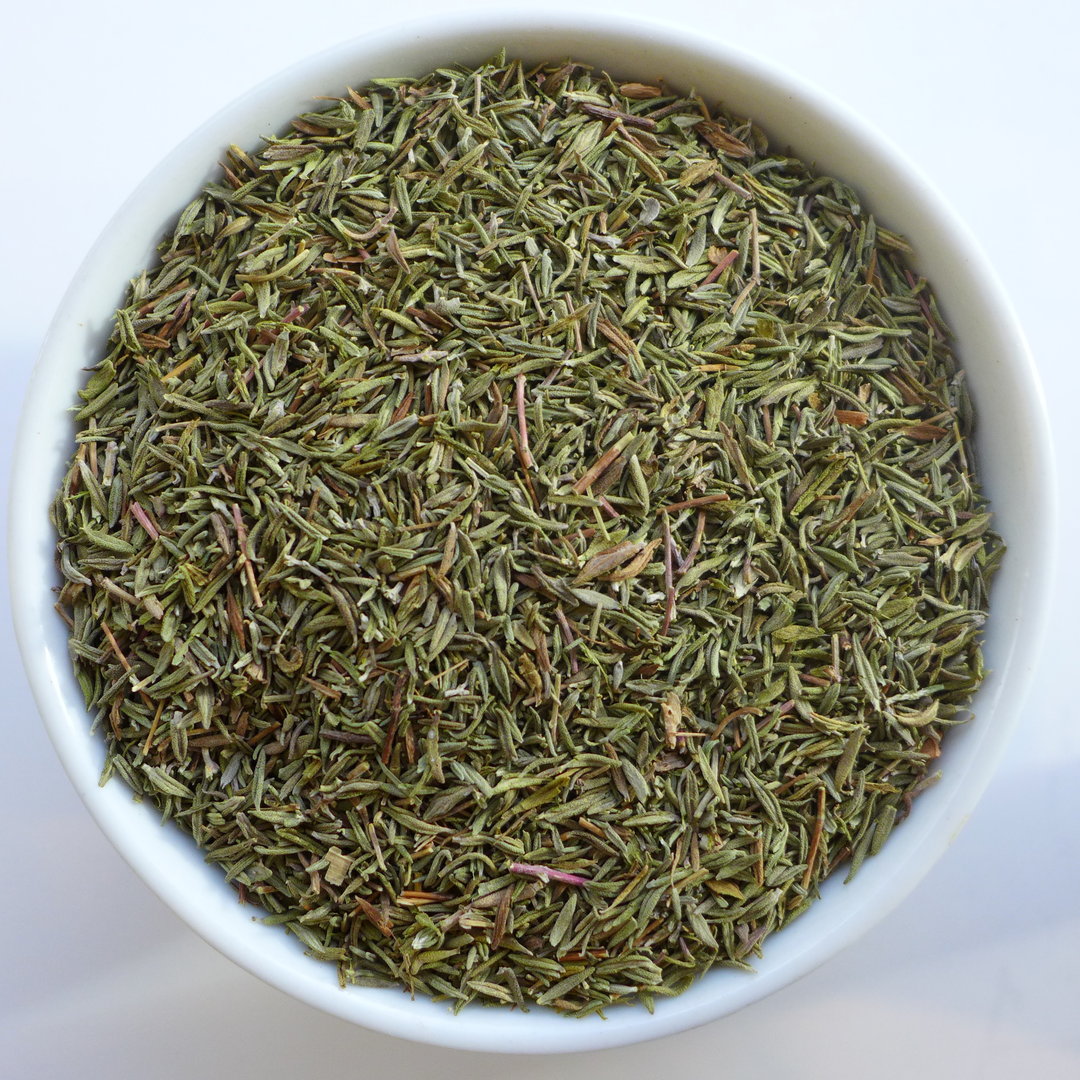 Erläuterung: geschnitten. Seit über 3000 Jahren ist Thymian eine wichtige Gewürzpflanze. Ein „Tausendsassa“ unter den Gewürzen. Beigabe vieler Teemischungen und beliebtes Küchengewürz.