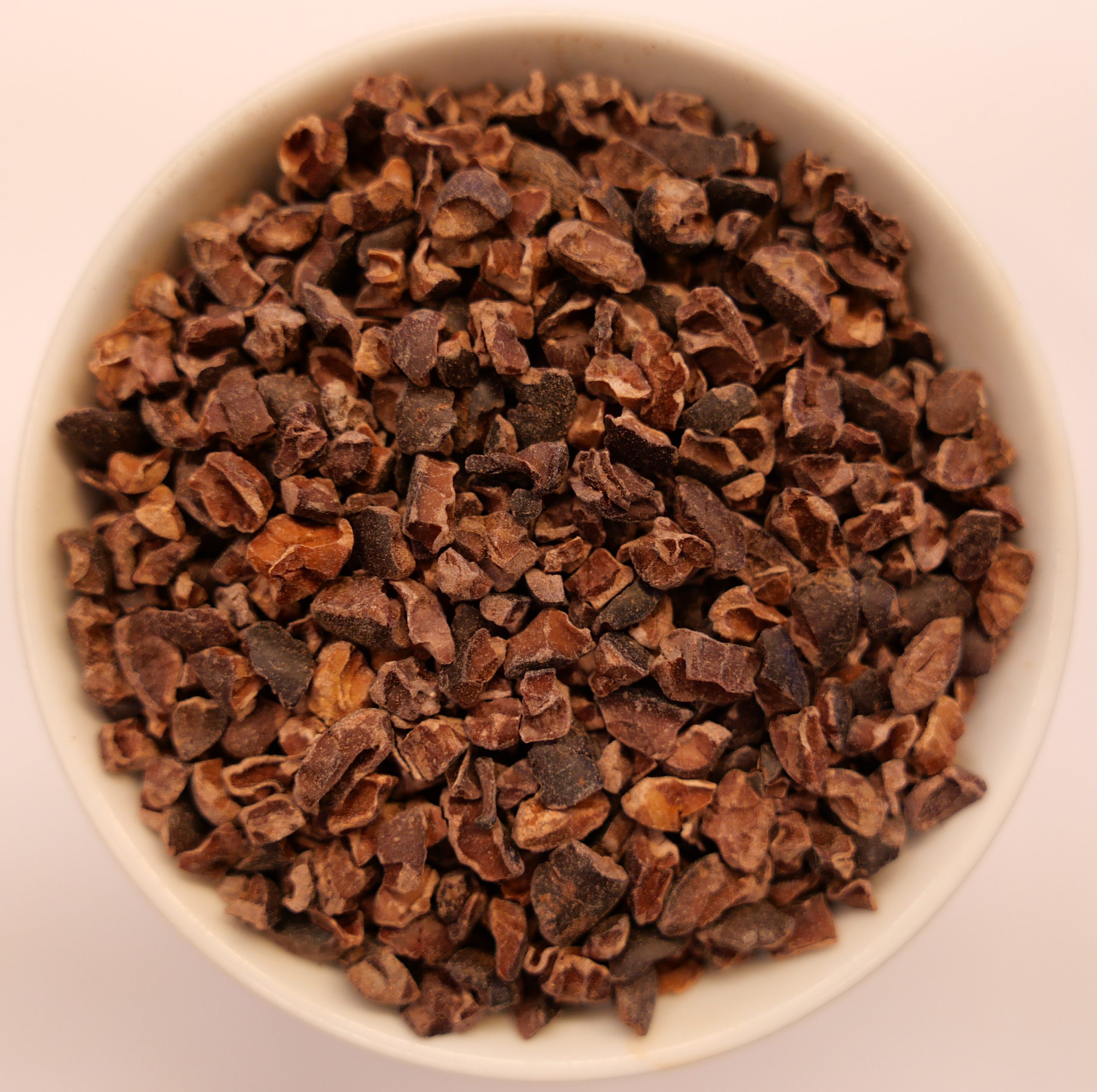 Erläuterung: Kakaobohnen-Bruchstücke aus kontrolliertem Bio-Anbau. Knabberspaß für zwischendurch, beliebt als Zugabe über Müsli, Pudding, Joghurt u. a. Speisen. Die Kakaobohne enthält nur wenig Koffein.