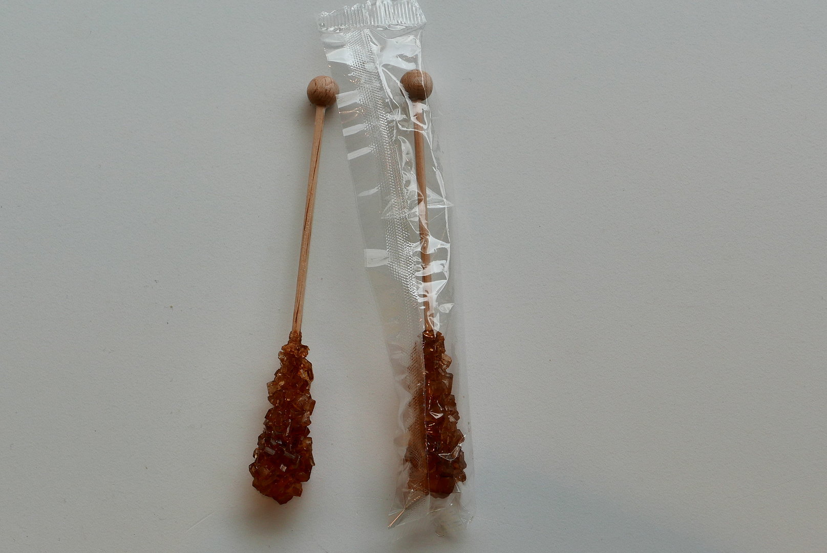 Erläuterung: Brauner Kandis am Stäbchen. Einzeln verpackt.